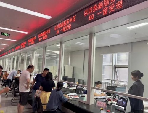 7月3日起,鄭州市住房保障和房地產(chǎn)管理局CBD大廳“以舊換新”專區(qū)正式開始開展業(yè)務(wù),設(shè)置4個服務(wù)專窗辦理“以舊換新”業(yè)務(wù)。同時,為讓有“以舊換新”意愿的群眾少跑腿,房屋交易中心將服務(wù)延伸到企業(yè),在收購主體城發(fā)集團設(shè)置“以舊換新”網(wǎng)簽專區(qū),開展“以舊換新”網(wǎng)簽備案等業(yè)務(wù)。