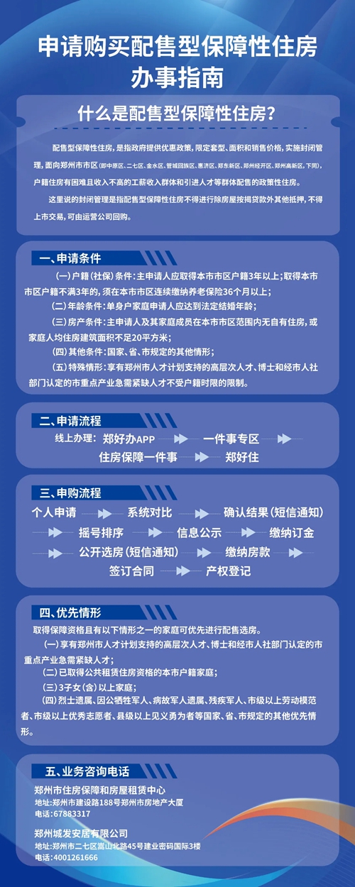 如在申請(qǐng)過(guò)程中有任何疑問(wèn),可以撥打鄭州市住房保障和房屋租賃中心咨詢(xún)電話(huà):0371-67883316、0371-67883317;鄭州市城發(fā)安居有限公司咨詢(xún)電話(huà):4001261666。咨詢(xún)時(shí)間為配售項(xiàng)目申請(qǐng)期間:8:30至20:00,其他時(shí)間(工作日):8:30至18:00。