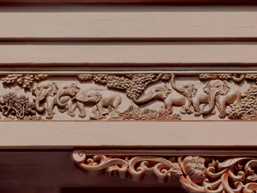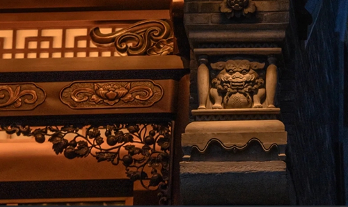 12號樓主題為獅子,主題來源于三門峽靈寶函谷關,象征“事事如意”的獅子在柱子、平板枋、額枋、卡子花、假梁頭等構件均有出現(xiàn)。
