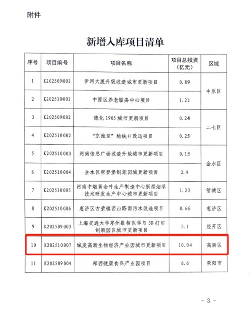12月3日,鄭州市城市更新項(xiàng)目庫完成新一輪動態(tài)調(diào)整,鄭州城發(fā)集團(tuán)高新生物經(jīng)濟(jì)產(chǎn)業(yè)園城市更新項(xiàng)目成功通過評審,正式納入市級項(xiàng)目庫。這標(biāo)志著該項(xiàng)目作為鄭州市及高新區(qū)重點(diǎn)布局的戰(zhàn)略性新興產(chǎn)業(yè)載體,獲得了關(guān)鍵性的政策支持與發(fā)展動能,為鄭州“產(chǎn)業(yè)升級”的城市更新版圖增添了重量級標(biāo)桿。